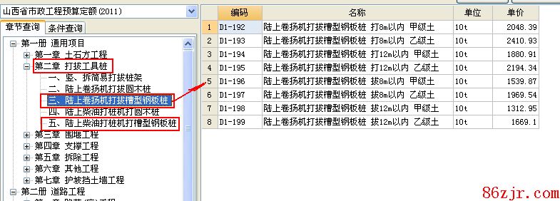 在市政定额说明中有这样一句话“钢桩挡土板中的打拔槽钢桩套用本册第二章“打拔东西桩”相应定额”,是指定额第二章---第三节、第五节中的定额。