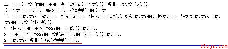管道闭水试验长度不减去检查井的长度,雨水支管闭水试验就是支管长度不减去检查井的长度。