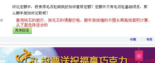 河北定额中,桥身用毛石砼砌筑的如何套用定额?定额中只有毛石砼基础项目,那么脚手架如何记取呢?