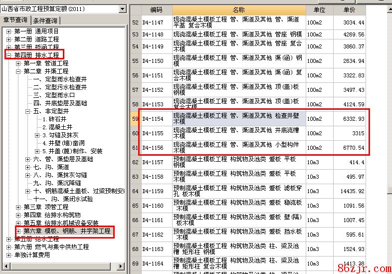 最佳答案1、工程雨水检查井全部为混凝土检查井,在定额中查了一圈,没有发觉可以和定型井尺寸相一致的,所以只能将井中构件破除单独组价,套“井渠”章节“非定型井”相应定额。(见下图) 2、吉林省定额里模板这块好像很缺啊,好多井中需要现浇的构件找不到对应的模板,套“井渠”章节相应模板定额子目。模板单位全是平方米,是要计算模板和混凝土接触面的面积来算量。(见下图) 3、制作清单时,我凭据检查井列项,里边把井构件拆分套了好多定额,这样可以。因为定型井不克直接套用,只有离开分别套价。 以下定额供你参考