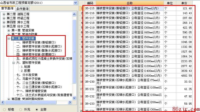 给水工程中PE三通和球铁三通应该套什么定额计量单位是个