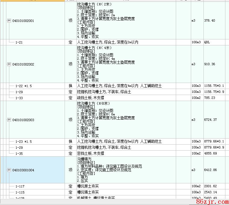特征描述,以及实际情况,如果只是挖土方就套一项挖掘机挖土方就可以了,如果是人工挖土就根据不同深度套人工开挖
