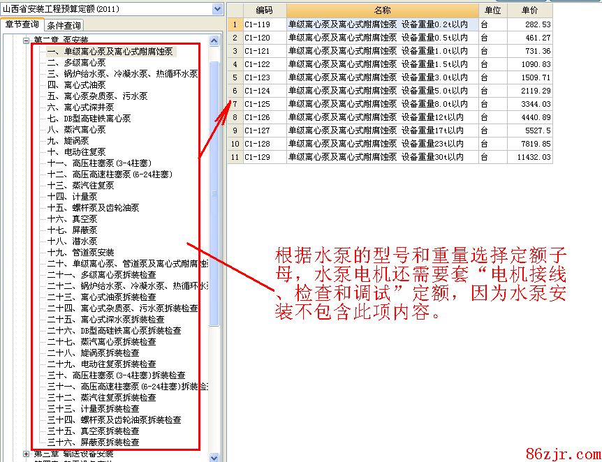 四寸泵即口径100的水泵,按泵规格、型号(离心泵、污泥泵、潜水泵等)和重量选择套“水泵安置”定额。