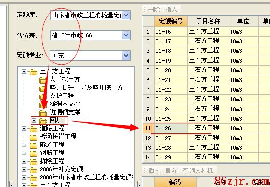计价软件中——点东西栏中的“维护”——子目维护,子目维护窗口中见图