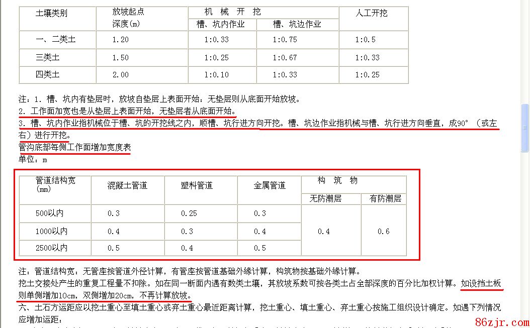 排水管道开挖,管座接纳135o基础,管道结构宽0.8m,凭据