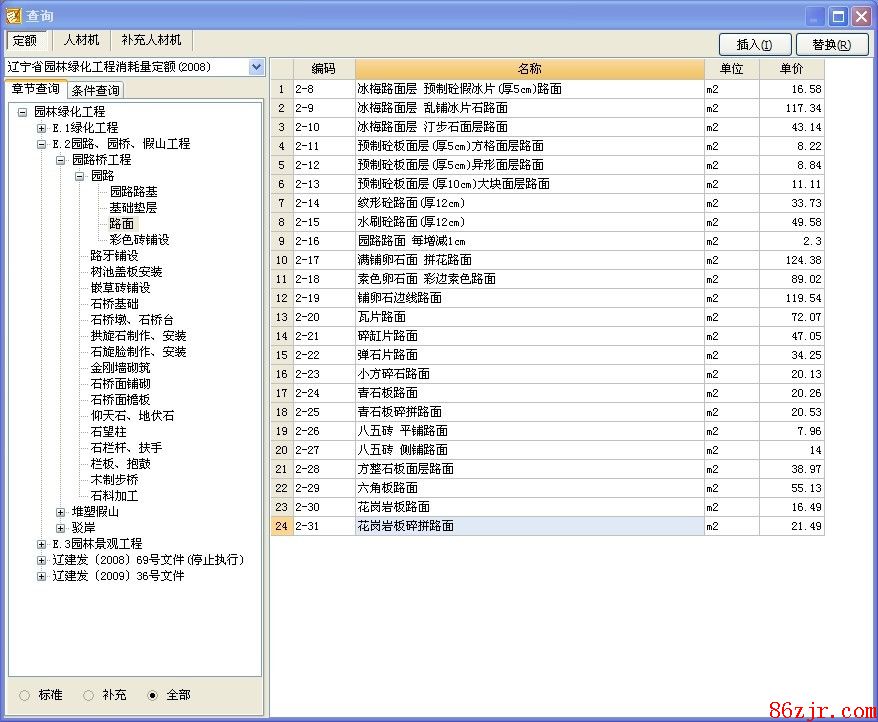辽宁园林定额中,有一项花岗岩板碎拼路面建议接纳