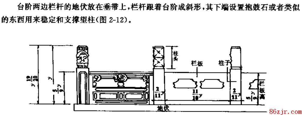 地伏是栏杆下面的一种构件,石质或