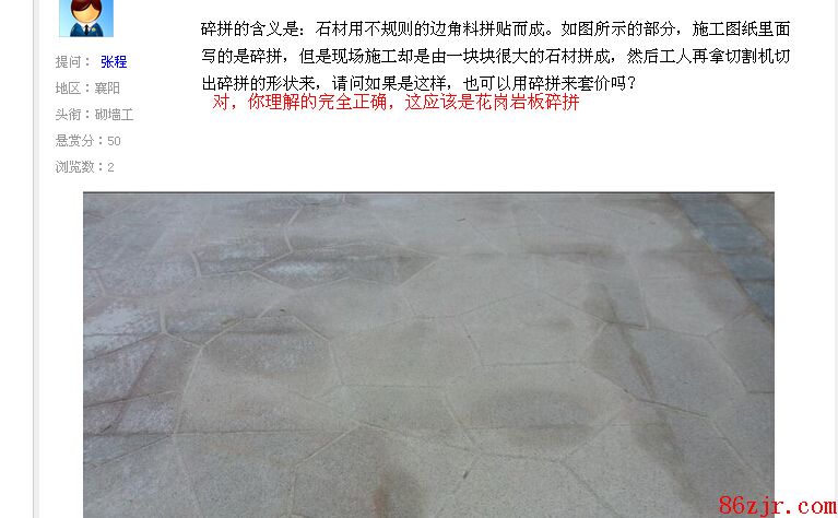 图纸里面写的是碎拼,但是现场施工却是由一块块很大的石材拼成,然后工人再拿切割机切出碎拼的形状来,请问如果是这样,也可以用碎拼来套价吗?
