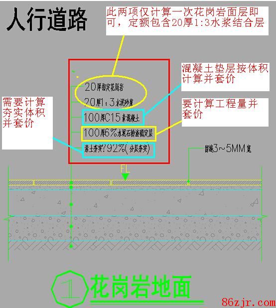 粘接层包含在面层里面,20厚1:3水泥砂浆不用算,其他都要算