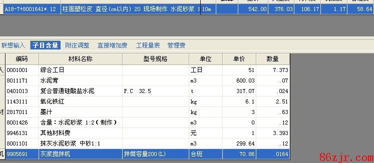 定额中的柱面塑松(衫)树皮定额子目。它的主材是铁粉,可以换算成设计要求的面层材料。