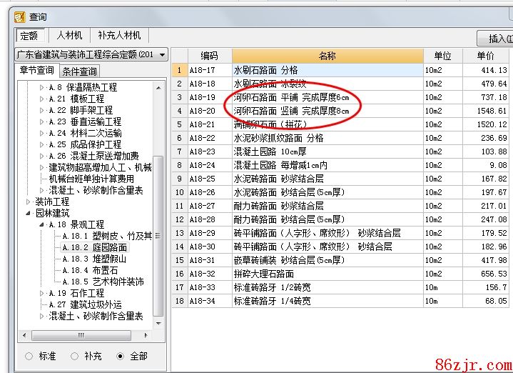 路面干安排,应该是一致适吧,如果景观的沟底还是可以的,所谓的干放就是直接将卵石放在装饰的外貌。定额也没有合适的子目套干放卵石,取代套价吧,套价可以将相应的子目中的砂浆删除。