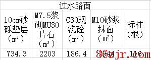 过水路面做法表包括砂砾垫层、M7.5浆砌片石、C30现浇砼路面、M10砂浆抹面,可以增补