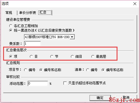 如果要修改汇总表显示的条理,可在造价书界面--东西--选项--汇总,修改汇总条理确定后再观察报表。