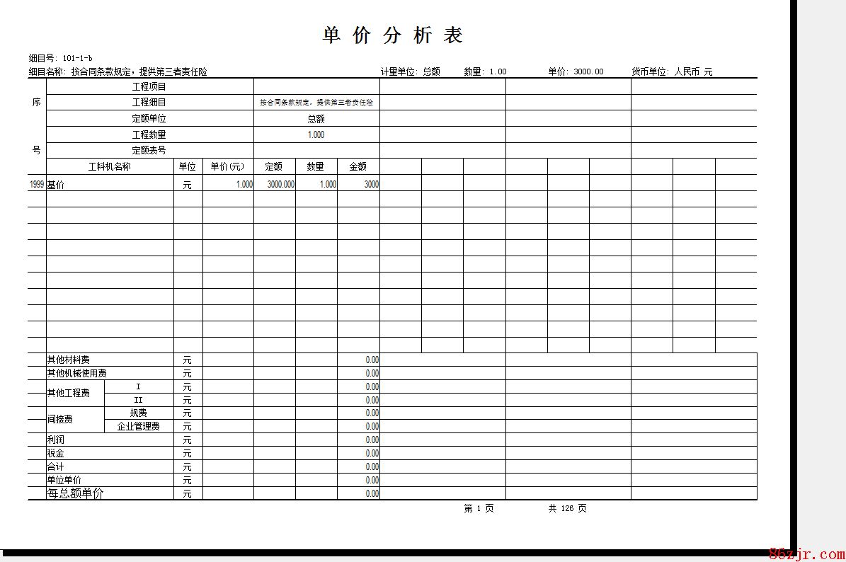 手工填的都有单价剖析 这个浪费纸张啊! 请问一下怎么样去掉 谢谢!