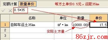 示例:运土方10000m3,运距为35km,土地契价为0.5元/m3。