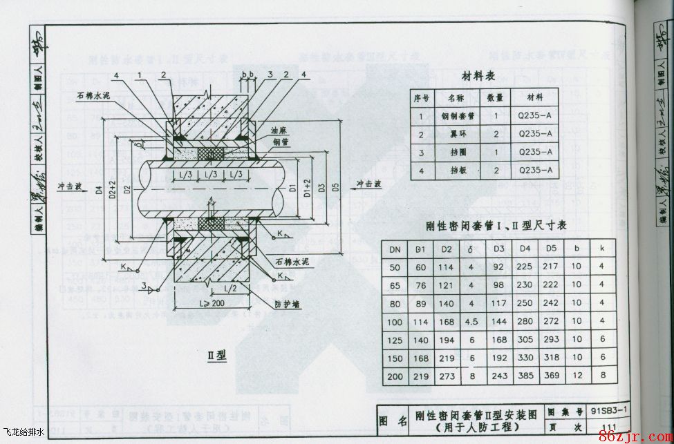 人防套管,是指穿过人防的清洁区和染毒区的电气,给排水,通风的管道的预埋套管,是务必安置刚性防水套管,套管和穿过的管道或电缆之间用硬性密封质料(好比水泥)加以密封.
