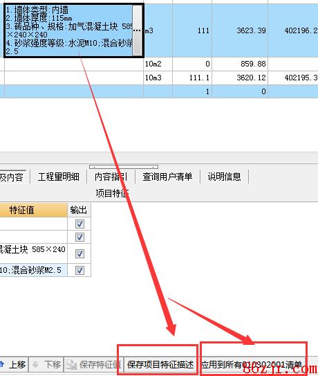 你好:1、首先你输入第一条的清单项目特征需要留存下。