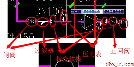 图纸上和水泵相连的管上附件都是什么