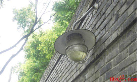 在围墙上的灯一般用金属材质,名称是围墙灯,具体用什么款式的灯,应按设计图纸标明来定,不是自己定的。