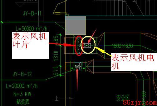 答:此处表示风机,你看引出线的标号JY-B-12\JY-1-11,表示两台风机的编号,具体的是什么,你首先要看图例,图例说明是什么就是什么。