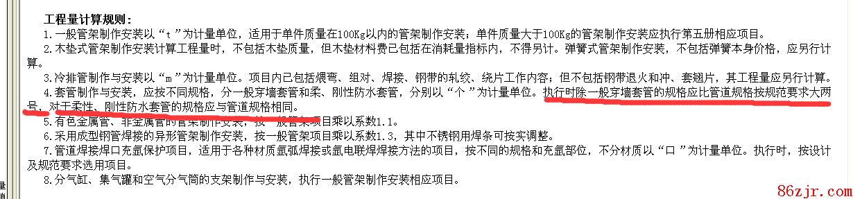 中只有制作是DN80,而安置没有DN80,我只能借用安置DN100的定额,还需要乘以折算系数吗?初学者,请见告,我们套管需要大于管子的两个号吗?