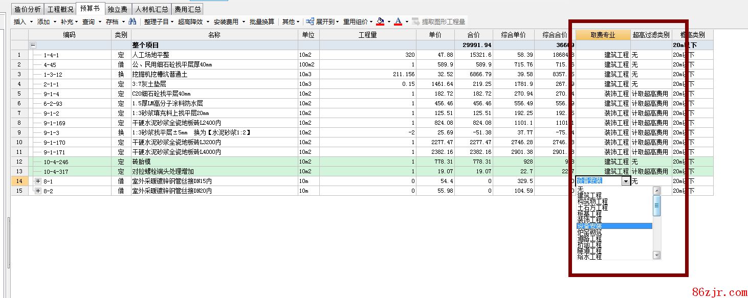 也可以选择您的取费方法,您这个土建子目可以是安置取费,也可以是土建取费,这就要看您的合同约定的