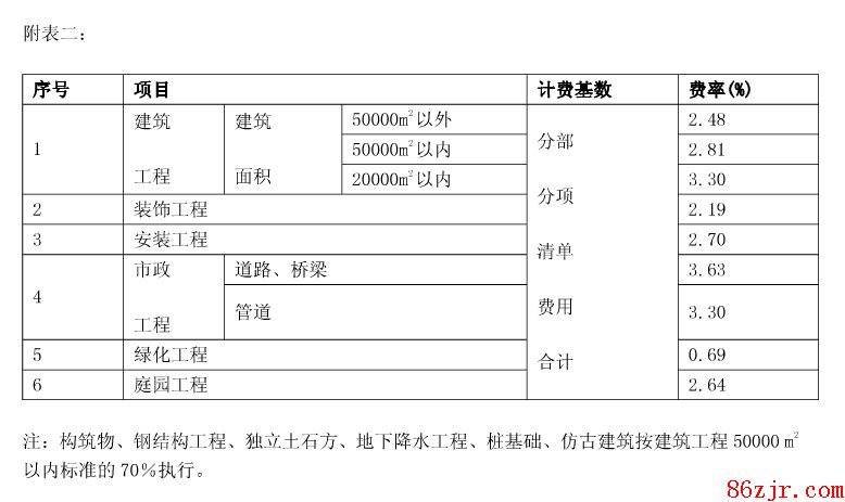 北京市建筑工程安全防护、文明施工措施费费率表(表格一、表格二、表格三)