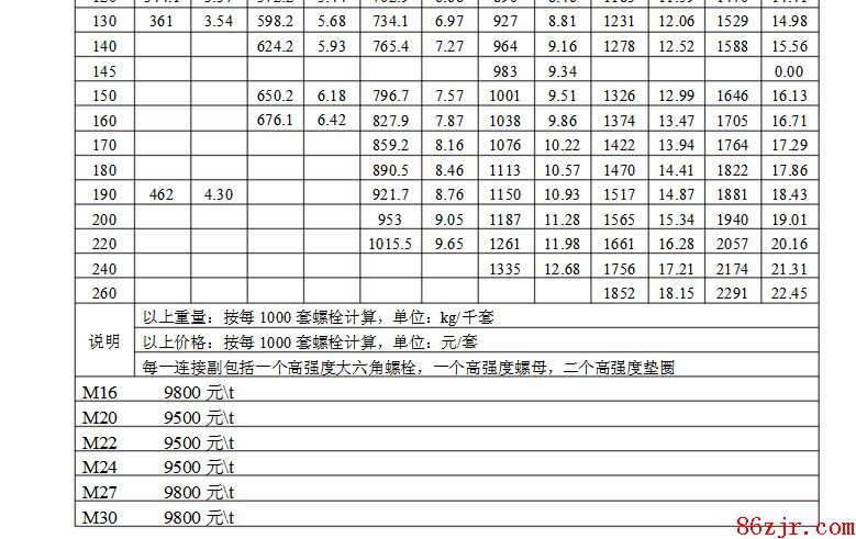 M16*150螺栓0.305kg/个,M16螺母0.062kg/个,垫圈0.023kg/个