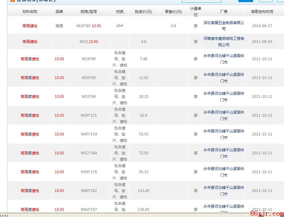 请问谁知道1吨高强螺栓,大概几多钱啊,最好是10.9s的造价行业最大的互动问答知识信息交流分享平台,凝聚了 造价行业网友的智慧
