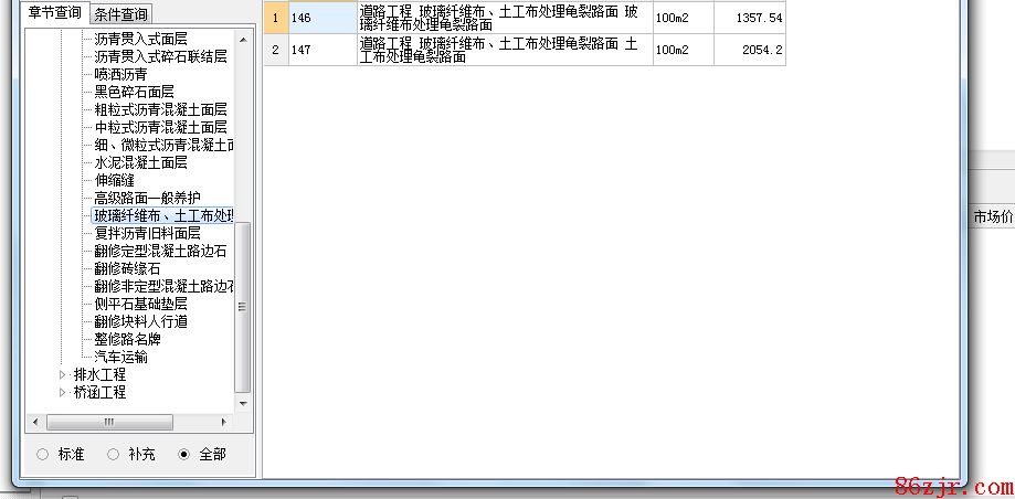 计价定额相关铺筑土工格栅、土工布 铺筑土工布子目。