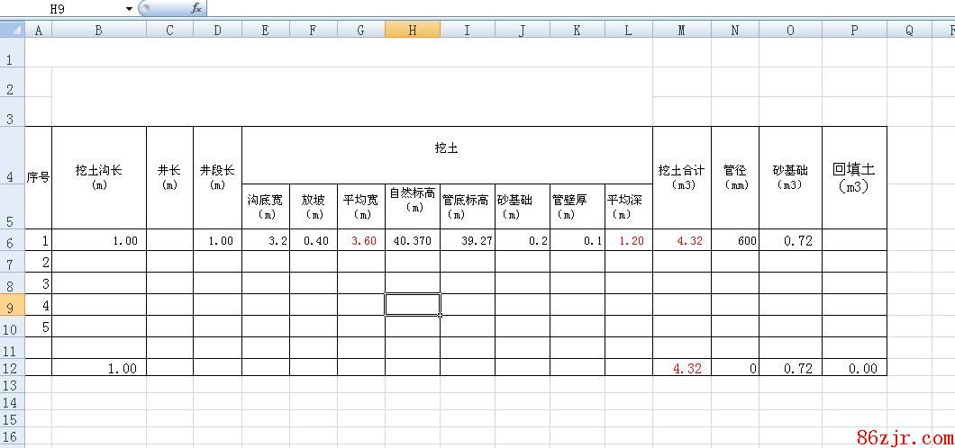 Y1;自然地面标高40.37 设计地面标高40.9设计管内底标高39.27 管径1 管壁厚度0.1管道垫层厚度0.2 沟槽底宽3.2(含劳动面的宽度) 放坡0.33 Y2 ;自然地面标高40 设计地面标高40.92设计管内底标高39.24 管径1 管壁厚度0.1管道垫层厚度0.2 沟槽底宽3.2(含劳动面的宽度) 放坡0.33 Y1到Y2的距离是29.76 求给出公式啊 这个挖方怎么算