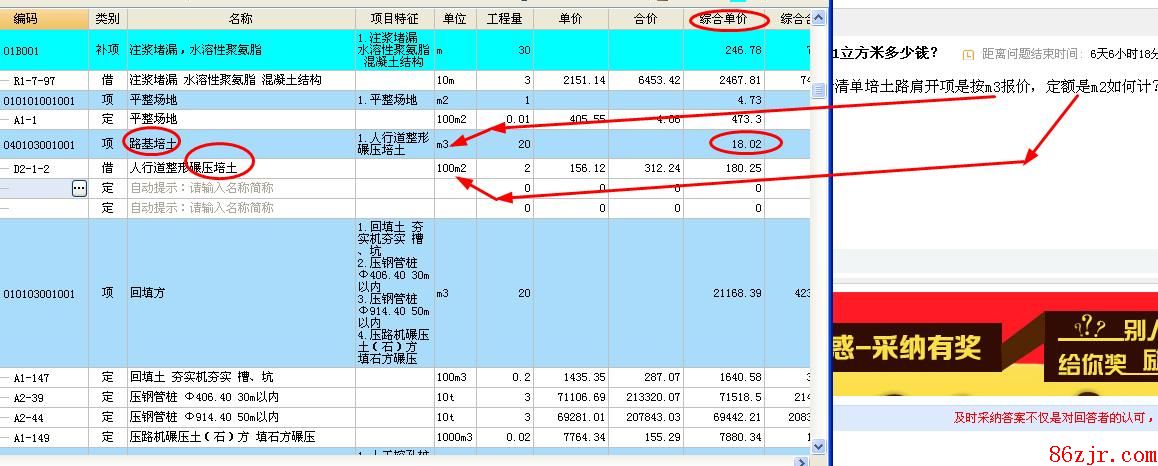 答:那就要计算两种工程量了,清单按立方计算工程量,定额按平方计算工程量,各自输入到计价中,由软件自动计算综合单价即可。