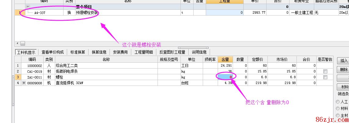 路灯预埋螺栓价格包含在灯杆里了,需要套取预埋螺栓,取消预埋螺栓内的主材即可