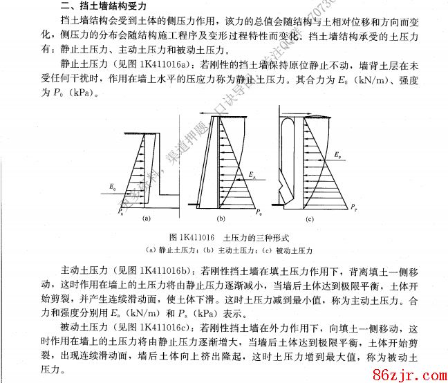 你好:挡土墙上的土压力按照墙的位移情况可分为静止、主动和被动三种。静止土压力是指挡土墙不发生任何方向的位移,墙后土体施于墙背上的土压力;主动土压力是指挡土墙在墙后土体作用下向前发生移动,致使墙后填土的应力达到极限平衡状态时,墙后土体施于墙背上的土压力;被动土压力是指挡土墙在某种外力作用下向后发生移动而推挤填土,致使墙后土体的应力达到极限平衡状态时,填土施于墙背上的土压力。这里应该注意的是三种土压力在量值上的关系为Pa极限平衡概念来说,Pa是主动极限平衡状态的最大值,而Pp是被动极限平衡状态时的最小值。如果地形较陡,采用重力式挡土墙会使得下部太宽,太肥大,这种情况可以考虑衡重式挡土墙