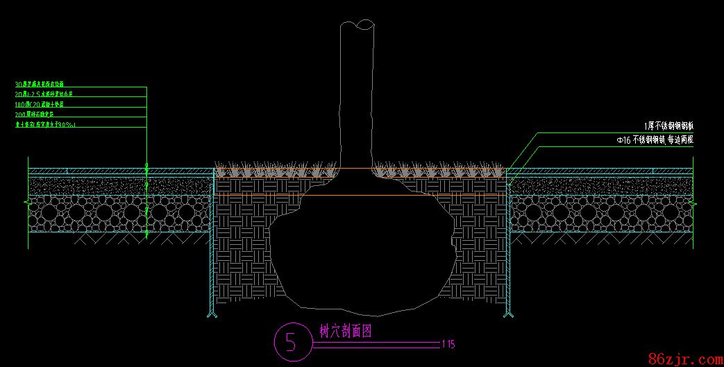 因为树池位置是没有人行道结构层的,如果有的话,树苗没要领栽植,无法成活。
