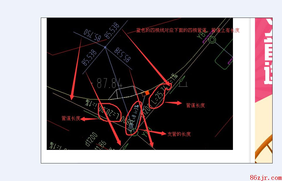最佳答案蓝色的线和数字体现什么?【蓝色的线代表进入该井的四条管道,数字体现各条管道的标高】绿色的井为什么有一个圈和两个圈?【都是体现井子,没有特殊含义】体现什么两个篦子中间蓝色的线是支管吧?【是支管】没有标注距离?【有距离的】