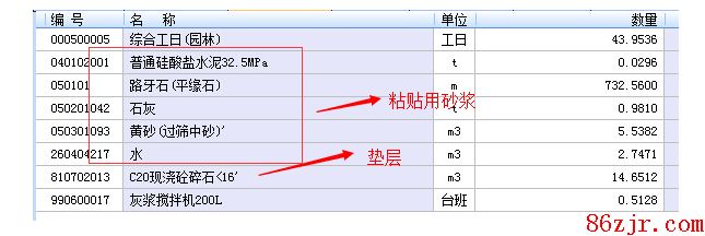 安砌石质路牙中材料消耗量中含有水泥和现浇砼碎石,请问这部分材料用在哪?