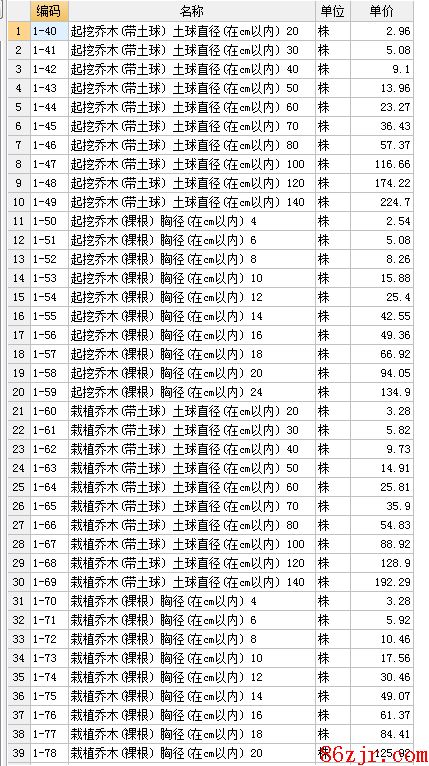 园林定额移栽一颗乔木(白松)几多钱?看定额子目