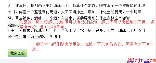 人工铺草坪,将凹凸不平处填绿化土,都套什么定额,现在套了一个整理绿化用地子目,再套一个整理绿化用地,人工回填原土,增加了绿化土的费用,一个铺草坪,草皮铺种,满铺,一个洒水车浇水,还需要套别的什么定额么?谢谢 还有一项机械铲除原草坪,套一个人工割草挖草皮,另外,上面回填绿化土的项目可否走土建回填土的项目?谢谢,还用了一台挖掘机,绿化的怎么不能输入机械场外运输费用呢? 1、先写出施工工序,根据施工工序在定额中一项一项查找对应定额子目套上,确保不漏项、有理有据。 2、套整理绿地定额子目,若填运土超过30公分则可走回填土项目。 3、若是签证台班的可以套机械场外运输费用 4、套人工挖草皮定额 5、套养护定额(根据养护期分别套相应养护定额),这个费用很高要套好! |