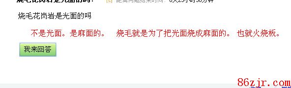 烧毛花岗岩也就是我们通常说的火烧板,不是光面的,它是开锯的毛板面经初磨后并放在固定架上,再对初磨后的表面进行火焰喷烧,而使其脱落0.5~1毫米的表面层。通过该方法加工的花岗石材料体现了石材本色,具有古朴、粗犷,自然感强。