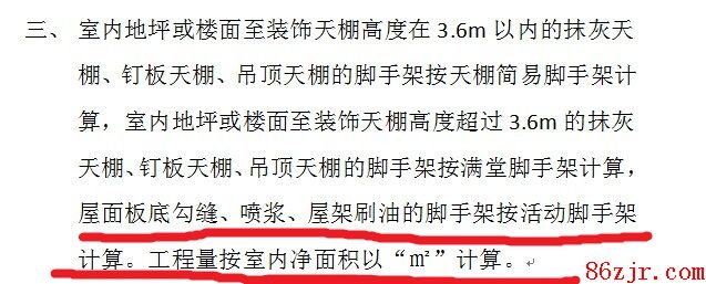 2、你说的顶棚刷漆(破除重装项目,2.4m)可以套用活动脚手架,其他两项不再套用。