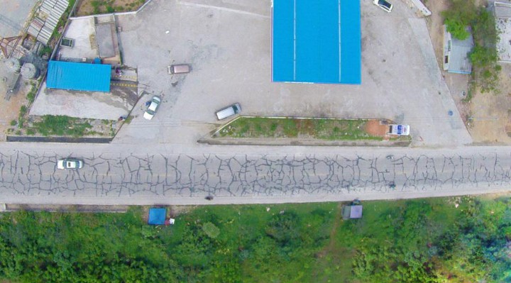 据海南省公路管理局儋州公路分局生产技术股副股长王芳称,2013年海南省西线高速公路实行封路改革,分流至海榆西线公路的车辆明显增加,超载车辆增多,使国道不堪重负,造成路面损坏严重。(航拍画面)中新社发 骆云飞 摄