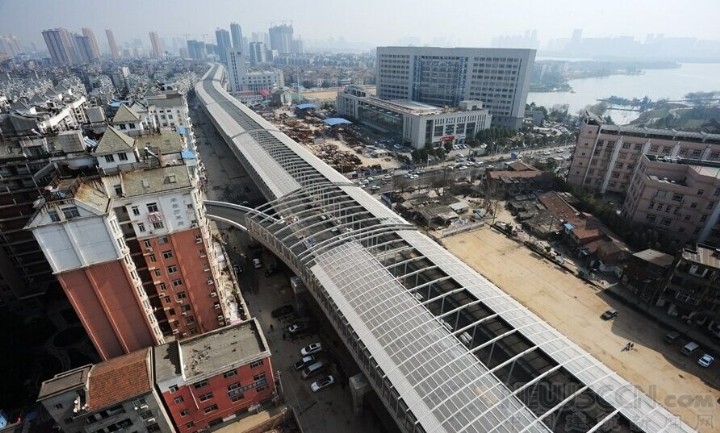2月12日,湖北武汉,2.29公里的墨水湖北路高架上,全程设置了全关闭式声屏障,从高空俯瞰,宛如一个巨大的“空中隧道”。据悉,即将通车的这座高架桥,为此多花了1亿多元。