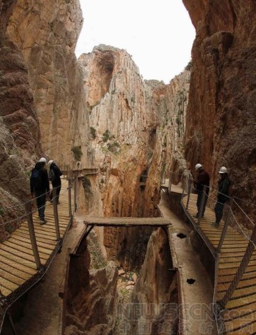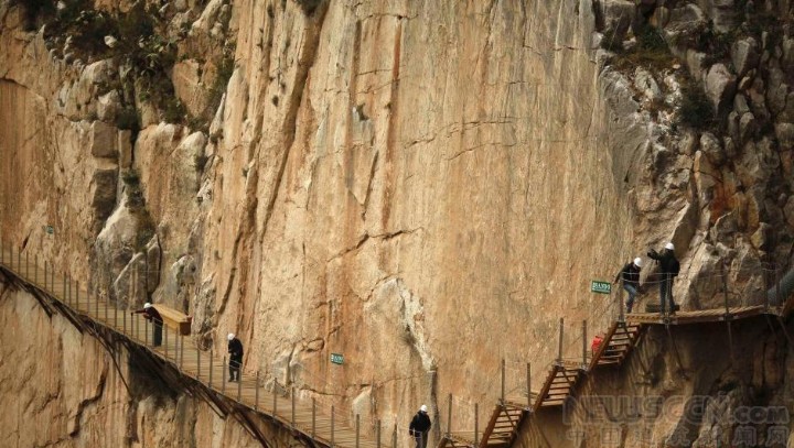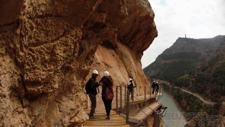 本地时间3月15日消息,西班牙马拉加,被称为“全球最惊险步道”的西班牙国王密道(El Caminito del Rey)在关闭了14年后再次向游人开放。这处1米宽的步道位于马拉加省埃尔乔罗河上方约100米高的悬崖壁上,于1901至1905年建成,原为往返于水电站与Gaitanejo瀑布之间的工人使用。多年来,游客务必在没有栏杆的情况下攀过这处崎岖山路。1999年和2000年间,这里先后产生两起事故,共致5人丧生,有关方面于2001年将其关闭,进行修整。栈道将于3月28日开放。