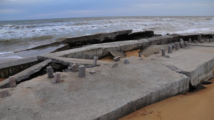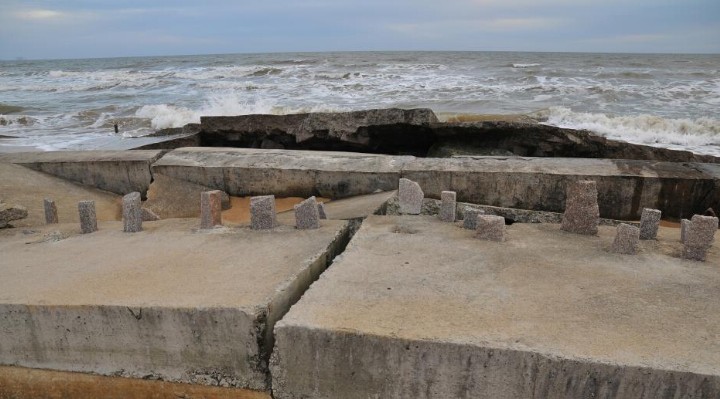 2015年1月20日,山东省日照市山海天旅游度假区两城街道安家河口至日照国家森林公园之间,数百米防潮堤已垮塌。据本地渔民介绍,这处建成不敷3年就被海浪冲毁的防潮堤,垮塌现场没有发觉一处钢筋。