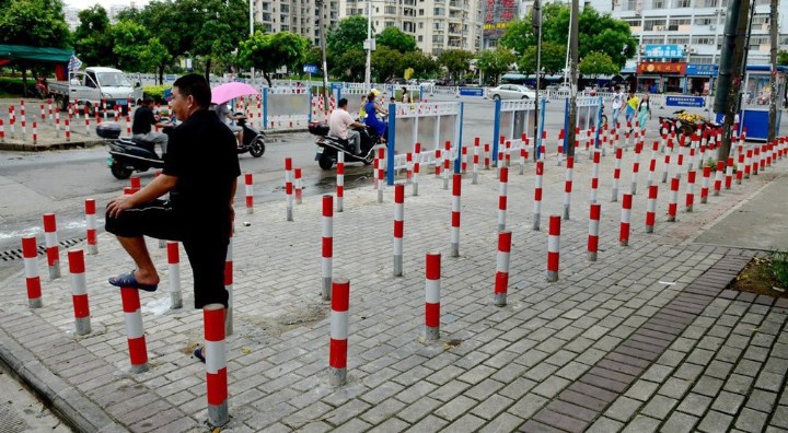 近日,在广西北海街头,竟然出现了武侠小说中的“梅花桩”!这些红白相间的柱子在人行道上很显眼,据说,这些“梅花桩”是城管局针对路边摊点乱摆乱卖的现象想出的要领。