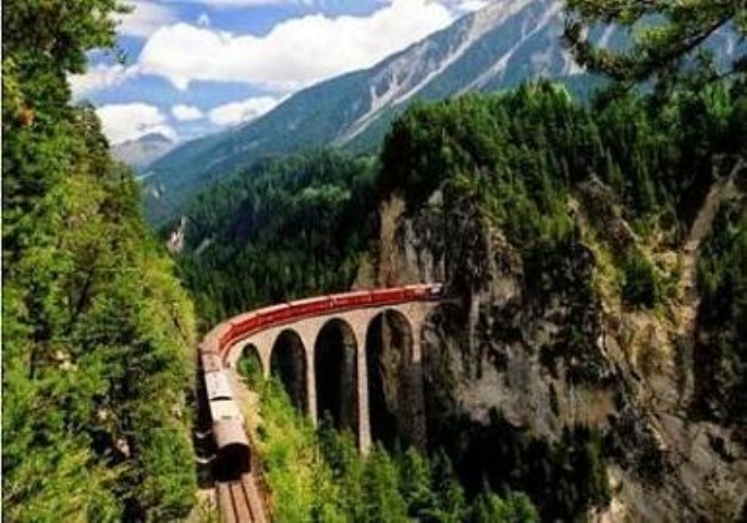 在风景明媚的瑞士铁路线中,这条线路是为人们赞美最多的。线路不长,行车速度极慢,每小时20英里,可你不会希望它跑得更快。途中穿越南阿尔卑斯山196座桥梁、55个隧道,海拔最高处达2253米,已被联合国列入世界自然和文化遗产。