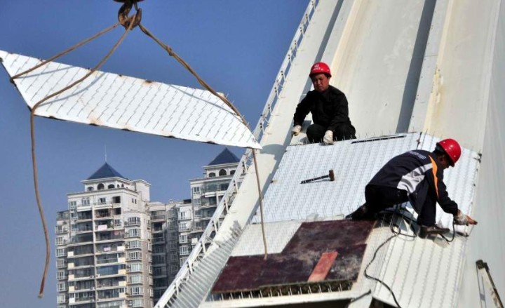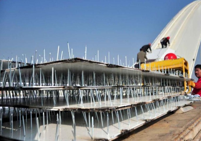 人员在桥拱焊接“铁钉阵”,以防有人爬上桥拱轻生或者上演“跳桥秀”。