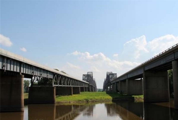 长度:5393英尺 (约1644米)这一组桥梁并非真的从一州开始,到另一州结束的,但如若在200年前就造好的话,可能就是公路这种情景了。俄亥俄河将两地一分为二。很久以前,桥梁尽头所在地是公路印第安纳州的一局部,但1812年的地动转变了河流的流向,所以那块土地现在理论上属于肯塔基州。过了桥半英里(约805米)处即是公路真正的印第安纳州。