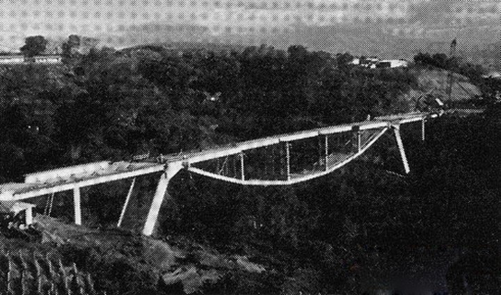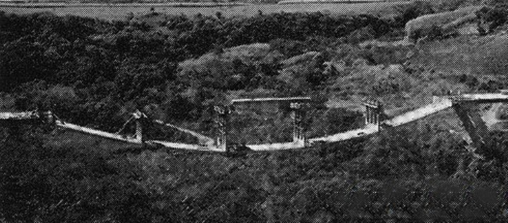 来个近景,请留意这是一个峡谷,下面就是河水,如果桥墩一直到底,那应该需要多长,多粗。